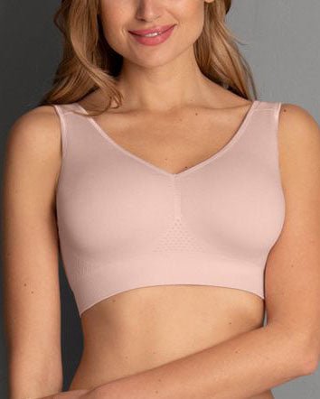 The Anita Lynn Post Mastectomy Bra gives a sporty look with uncomplicated comfort. The seamless mastectomy crop top opens at the front with a full-length zip - a fashionable eye-catcher and very easy to manage. The removable moulded pads in the double-layer cups, which conceal, as well as support, create a natural looking silhouette. Comfortably wide, soft straps round off the ''second skin'' comfort.