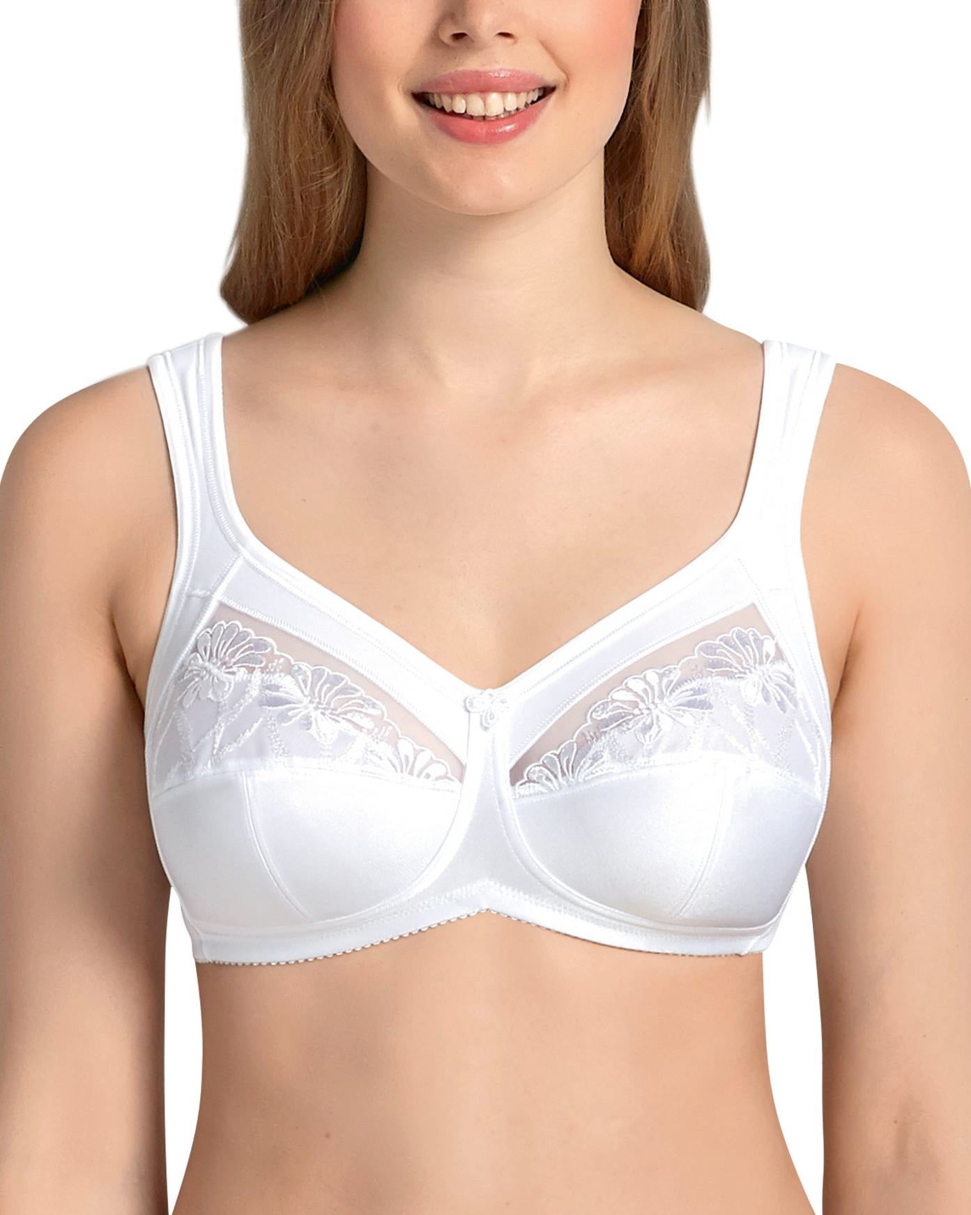 The Safina Comfort Soft Bra is not only attractive, but also offers first-class comfort. The three-section cups with an opaque lace and a sheer top layer at the front of the breasts create a modest and feminine look.
