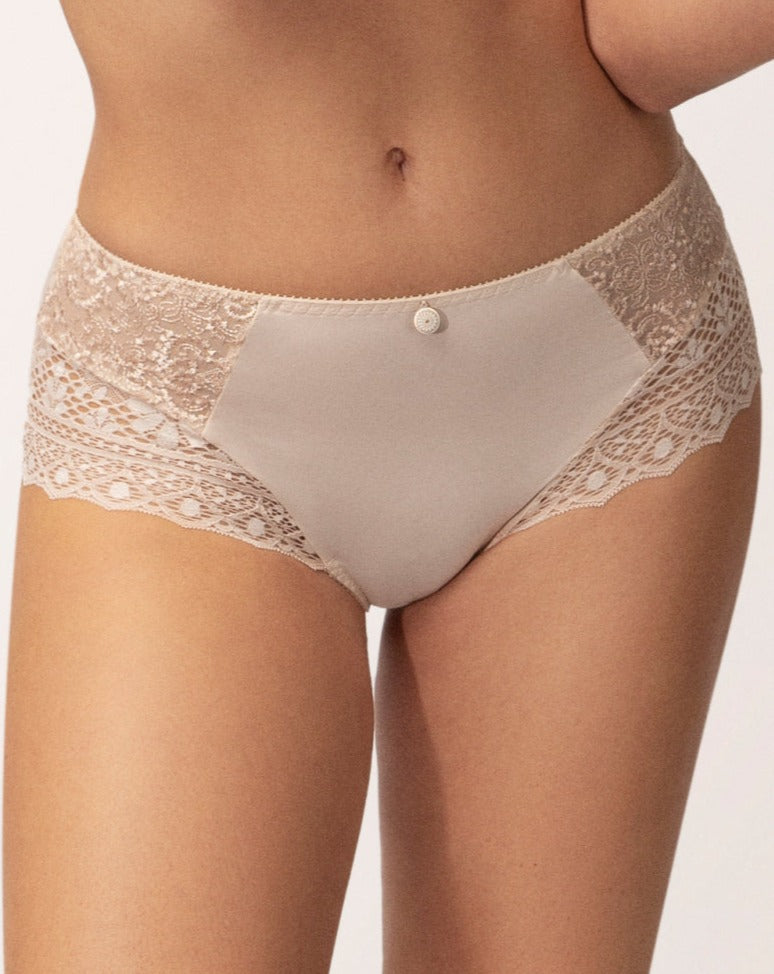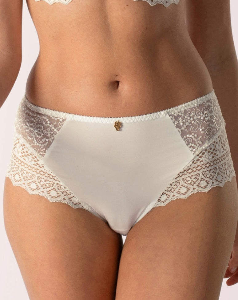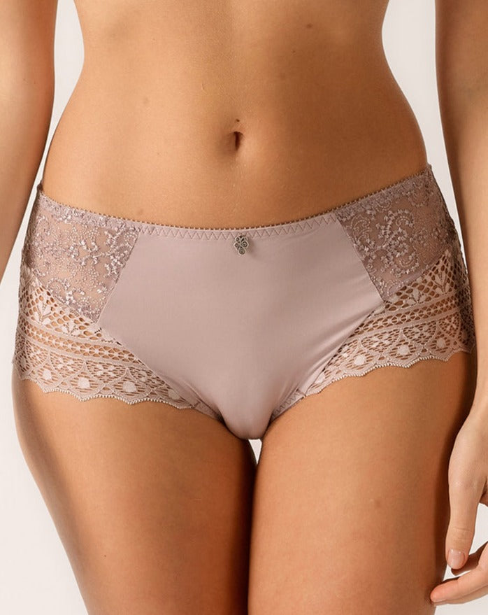 The Empreinte Cassiopee Panty is a combination of glamorous seduction and comfort. Chic with an interplay of transparency and contrasting fabrics mixed with lace inserts, this unavoidable piece encapsulates many advantages. This everyday garment is invisible under clothing and has a sophisticated and desirable appeal. Cassiopee provides a feeling of well-being with its level of comfort and hold and is the answer for all women looking for support, invisibility and glamour.