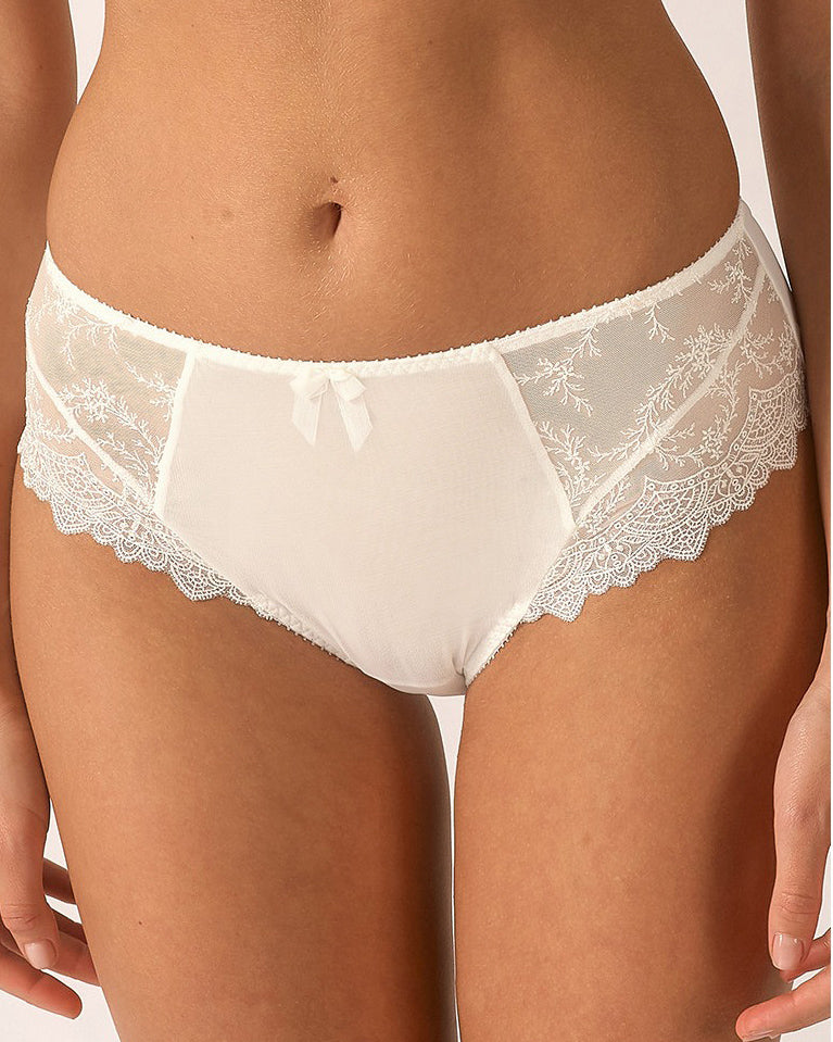 The Empreinte Louise Panty has a flattering cut on the front and is very comfortable. The sheath of tulle lining in the central panel provides soft support and the decorative guipure lace on the thighs lightens the style. Delicate and precious, Louise charms with a romantic and graceful style. A fluid theme with naturally generous sophisticated contours.