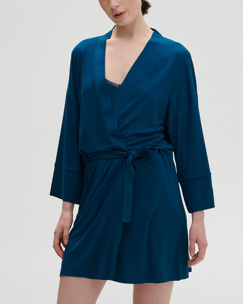 The Simone Perele Aurore Kimono is made of soft eco-friendly knit mixed with a feminine lace detail. A new basic, to wear from morning till night. Kimono in eco-friendly viscose, a flowy and ultra soft fabric.