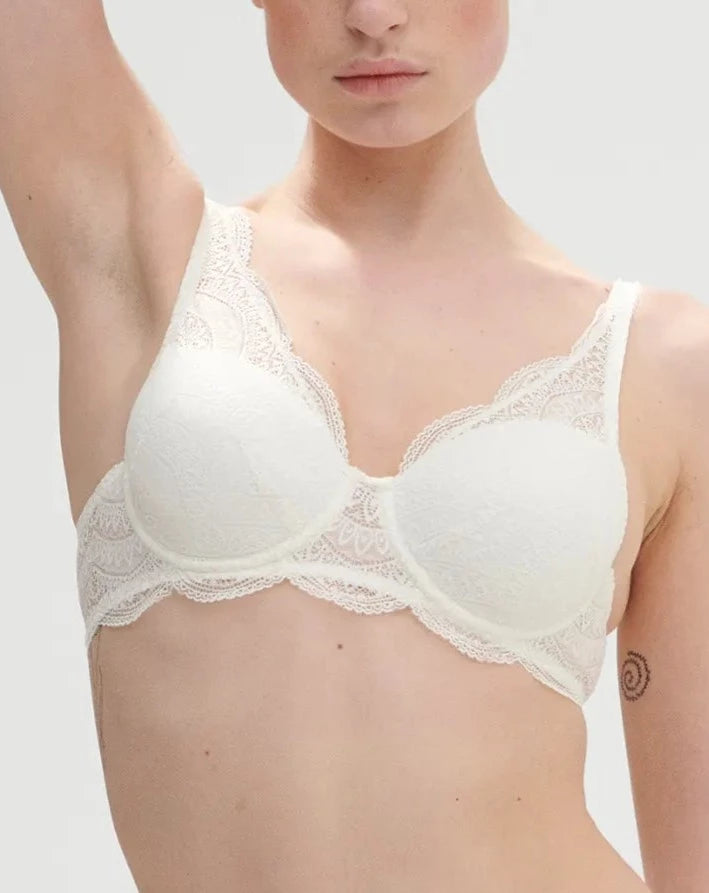 You love lace and comfort, you say? Then the Simone Perele Karma Triangle 3D Demi Bra everyday lace t-shirt bra is made for you. Starting with their signature 3D spacer cups that hug your curves for a lightweight, breathable, second-skin fit. Next, we added all-over premium lace that lays flat for a seamless look under your daily chic. So perfect, you’ll find yourself reaching for it every day.